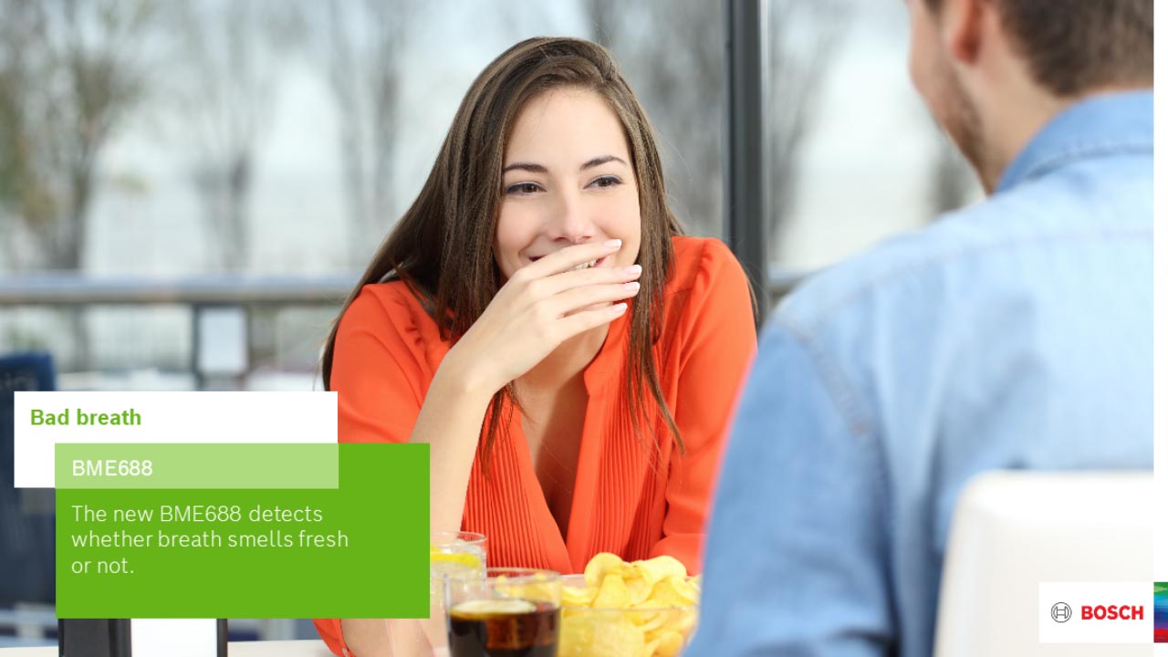 Negli esempi di possibili applcazioni, l’azienda cita la possibilità di sviluppare un prodotto basato su sensori in grado di rilevare il cibo avariato, indicato dai VSC prodotti dai batteri all’interno degli alimenti. Allo stesso modo, anche l’alitosi o l’odore corporeo potrebbero essere rilevati in base ai VSC che producono. L’approccio ideale è quello di acquisire i dati rilevanti registrandoli direttamente nelle condizioni reali di utilizzo. Per esempio, campionando i gas in prossimità sia degli alimenti freschi sia di quelli in decomposizione, così da creare differenti modelli di combinazione per i VSC presenti nel campione d’aria. Il BME688 è in grado di eseguire un rilevamento molto accurato di VSC e i kit di sviluppo software consentono di ottimizzarlo per altre miscele di gas e applicazioni.
