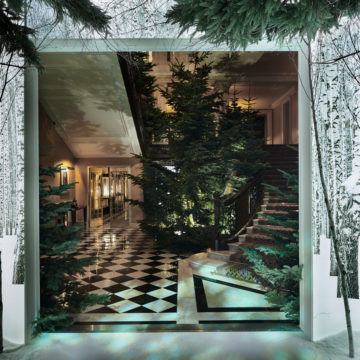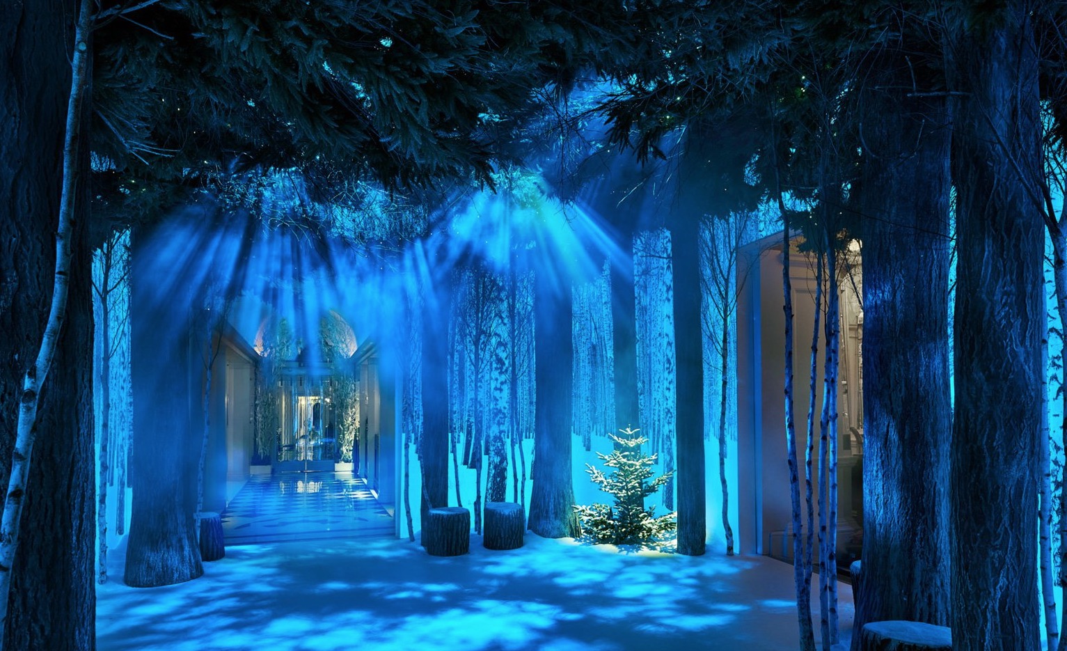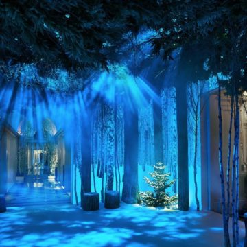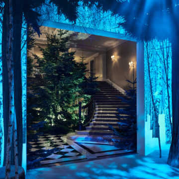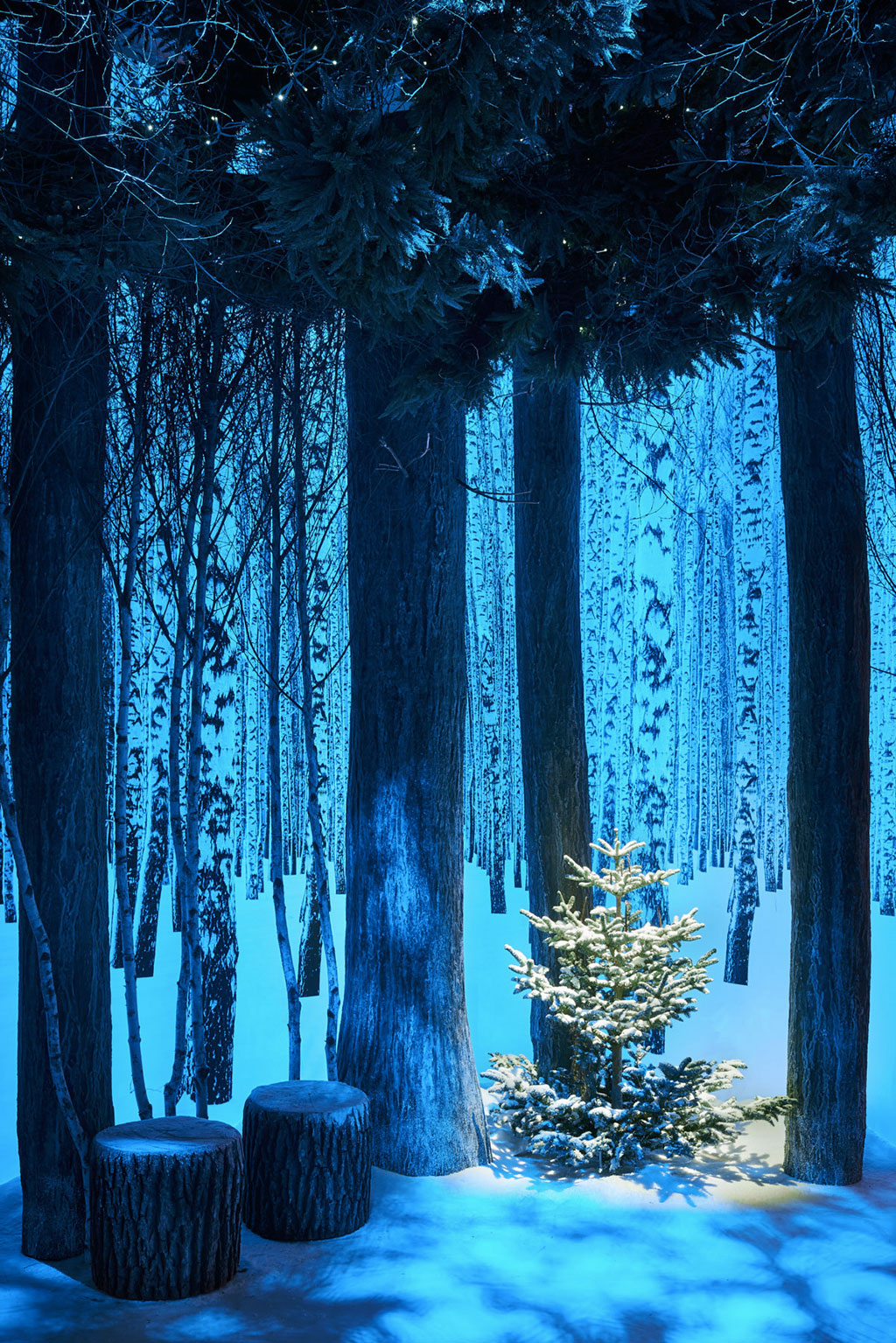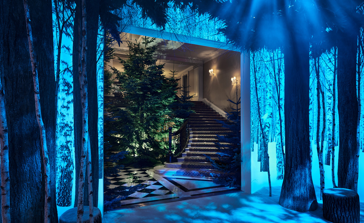 I due designer hanno collaborato con lo studio britannico Michael Howells (specializzato in film e moda), nel tentativo di reinterpretare l’albero di Natale, trasformando l’enorme hall del Claridge in un impianto festivo a tutto tondo, con pareti sulle quali vengono proiettate immagini in bianco e nero di betulle innevate. In questo contesto coinvolgente, svettano torreggianti degli alberi di Pino, mentre in sottofondo è possibile ascoltare musiche natalizie, insieme a gufi, usignoli, passeri e volpi.