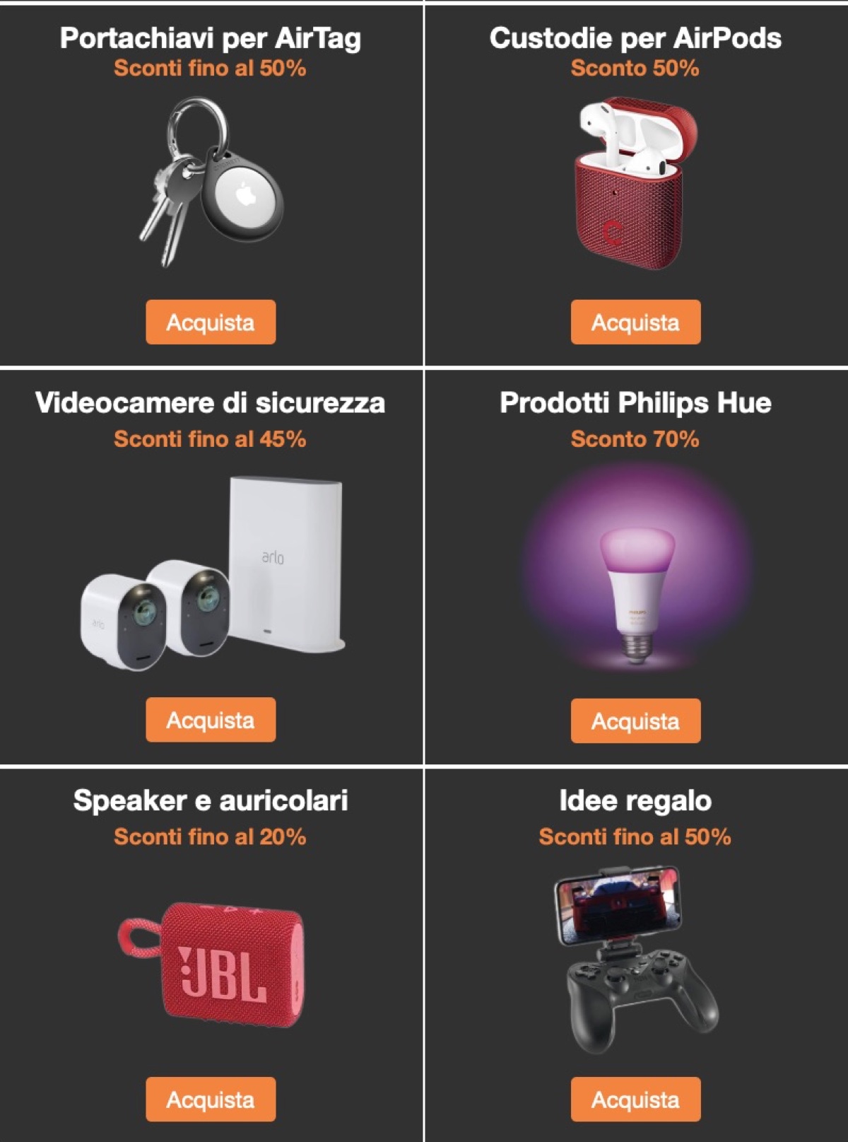 Occasioni da non perdere anche per speaker e auricolari proposti con sconto del 20%, più una lunga serie di accessori e prodotti di tecnologia dei migliori marchi, perfetti come idee regalo, anche questi proposti con sconti fino al 50%.