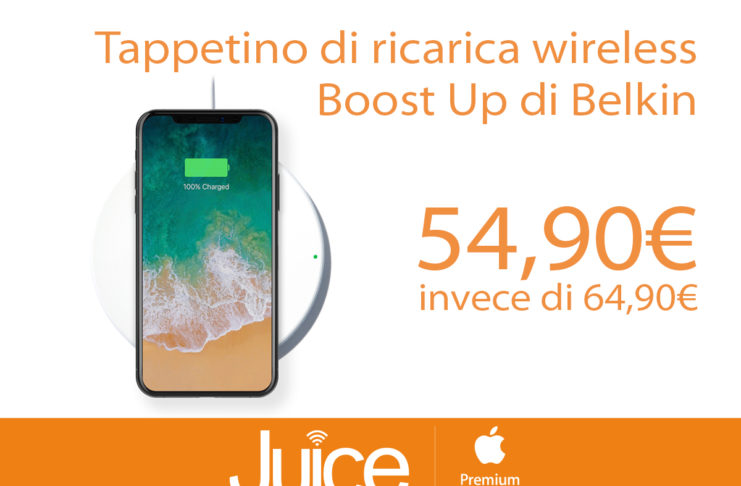 Grazie alla nuova offerta Juice gli utenti di iPhone X, iPhone 8 e iPhone 8 Plus possono iniziare a sfruttare subito la ricarica senza fili al massimo della potenza risparmiando: infatti fino al 12 maggio è possibile acquistare a prezzo scontato Belkin Boost Up, la base di ricarica con tecnologia Wireless Qi.