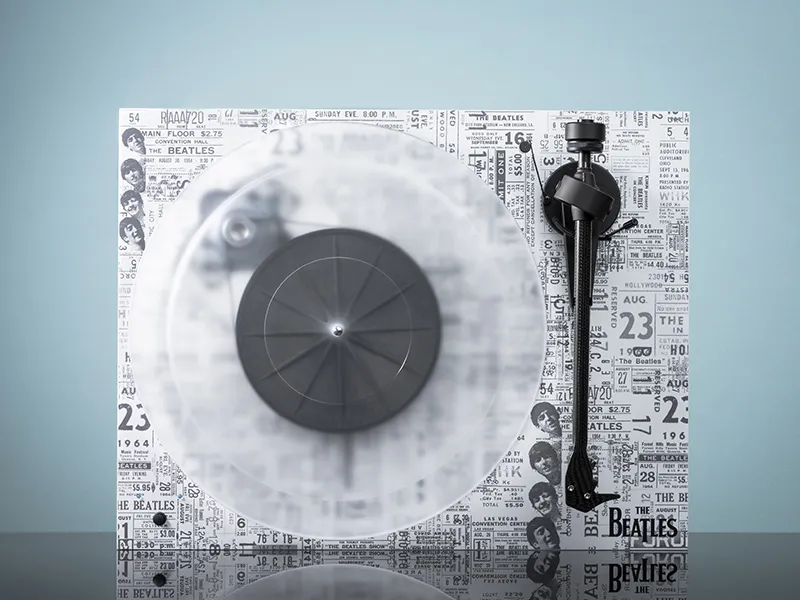 Questa volta il produttore prende a modello la più grande band di tutti i tempi, celebrata in un giradischi con una grafica che riproduce fedelmente le copie dei biglietti e gli opuscoli originali del tour leggendario del 1964. La serigrafia è piuttosto dettagliata, difficile da realizzare a detta del produttore, ma resa possibile grazie a tecniche speciali basate sull’applicazione del pigmento a più livelli. Dopo la distribuzione dell’inchiostro, infatti, la base viene essiccata con luci ultraviolette speciali, per garantire dettagli perfettamente visualizzabili e longevità.