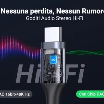 C’è una nuova soluzione per chi desidera ottenere un salto di qualità audio senza collegare DAC esterni: si tratta dell’adattatore di Ugreen che sembra un normale cavo ma all’interno integra un chip DAC che converte il segnale audio da digitale ad analogico non appena vi si collegano le cuffie
