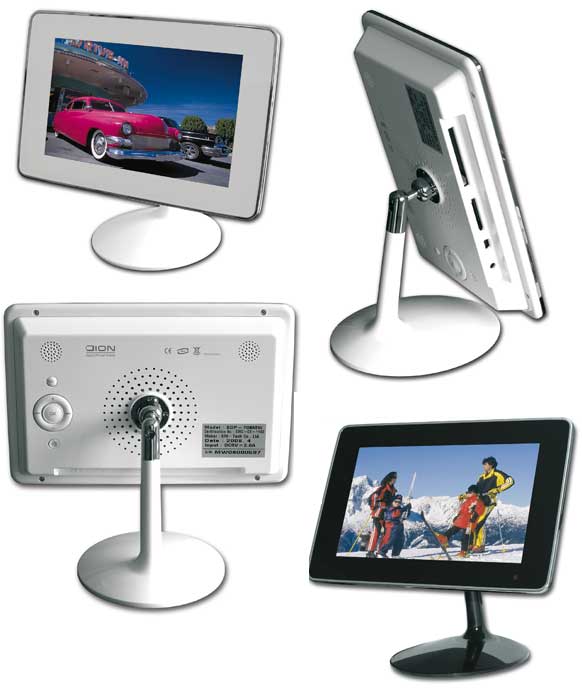 La società  tedesca DION ha realizzato un digital-frame (un visualizzatore di foto digitali) che ricorda molto il design del vecchio iMac G4 “flat panel”. Il display è da 7″, ha una risoluzione di 800×480 pixel ed è in formato 16:9 wide-screen.