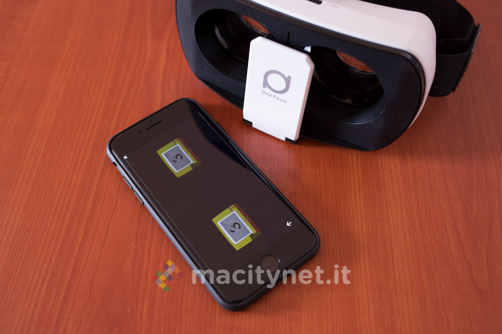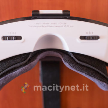 Se fino a questo punto abbiamo trovato soltanto punti a favore per il visore di Deepoon, il primo e forse unico difetto emerge proprio in questa fase. Non essendoci un cassetto che mantiene il telefono perfettamente in sede, è probabile che l’immagine non risulti perfettamente a fuoco. Alla combinazione di ghiera e selettori va così trovato il giusto posizionamento per lo smartphone, che si dovrà spostare in tutte le direzioni a piccoli passi fino a centrare perfettamente l’immagine.