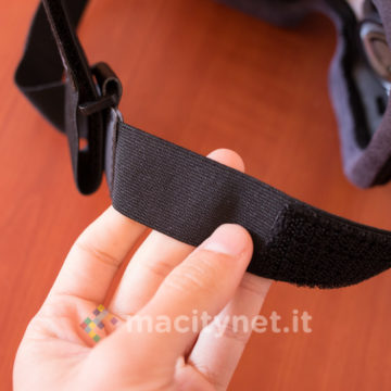 Il visore si indossa e resta ben saldo alla testa grazie all’ausilio di tre fasce regolabili nella lunghezza attraverso del velcro antistrappo. Sono principalmente realizzate in tessuto ed intervallate da alcune sezioni elastiche che permettono di indossare agevolmente il visore senza dover agire nuovamente sulla regolazione della lunghezza di ciascuna fascia, rendendo così immediati gli utilizzi nei giorni successivi.