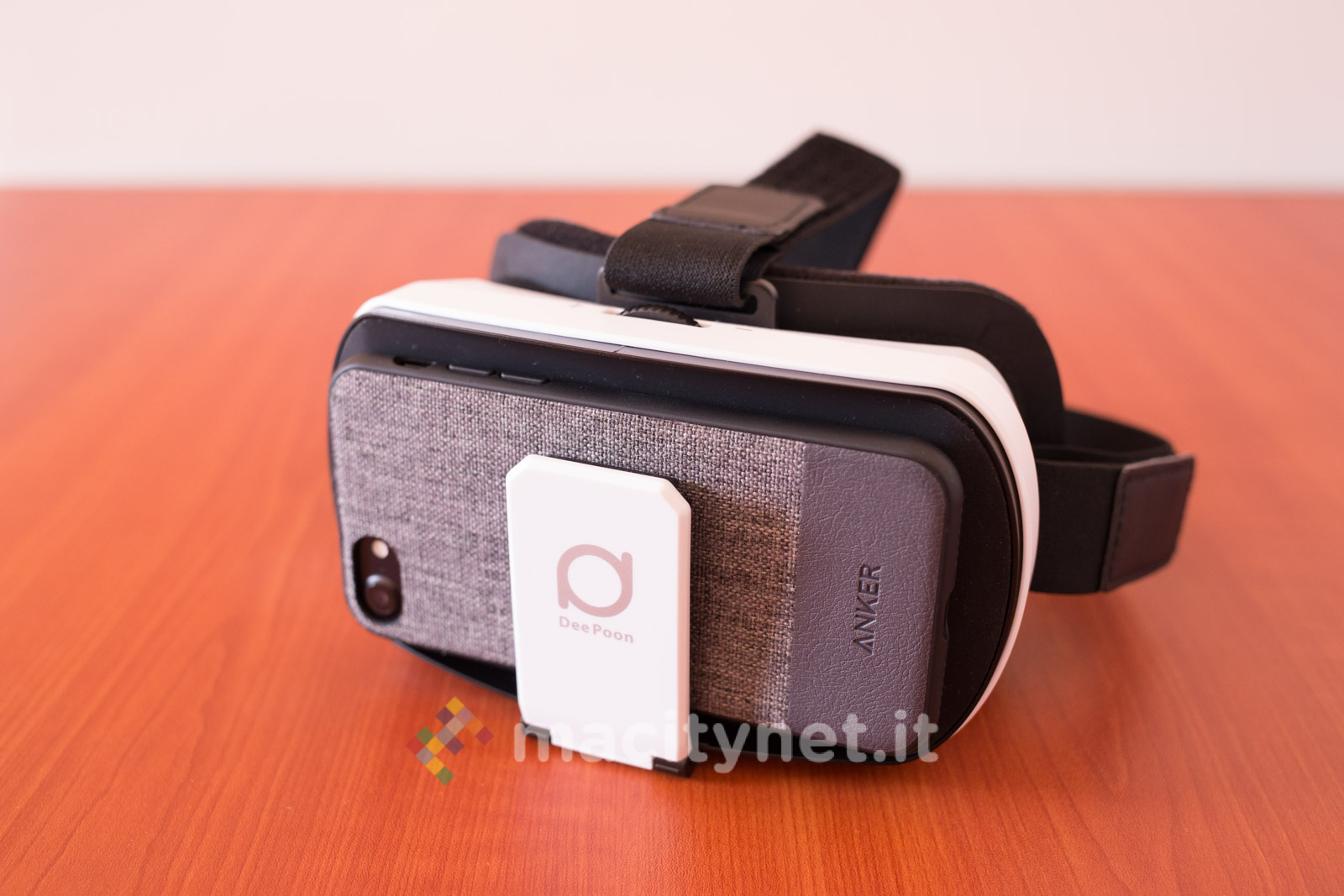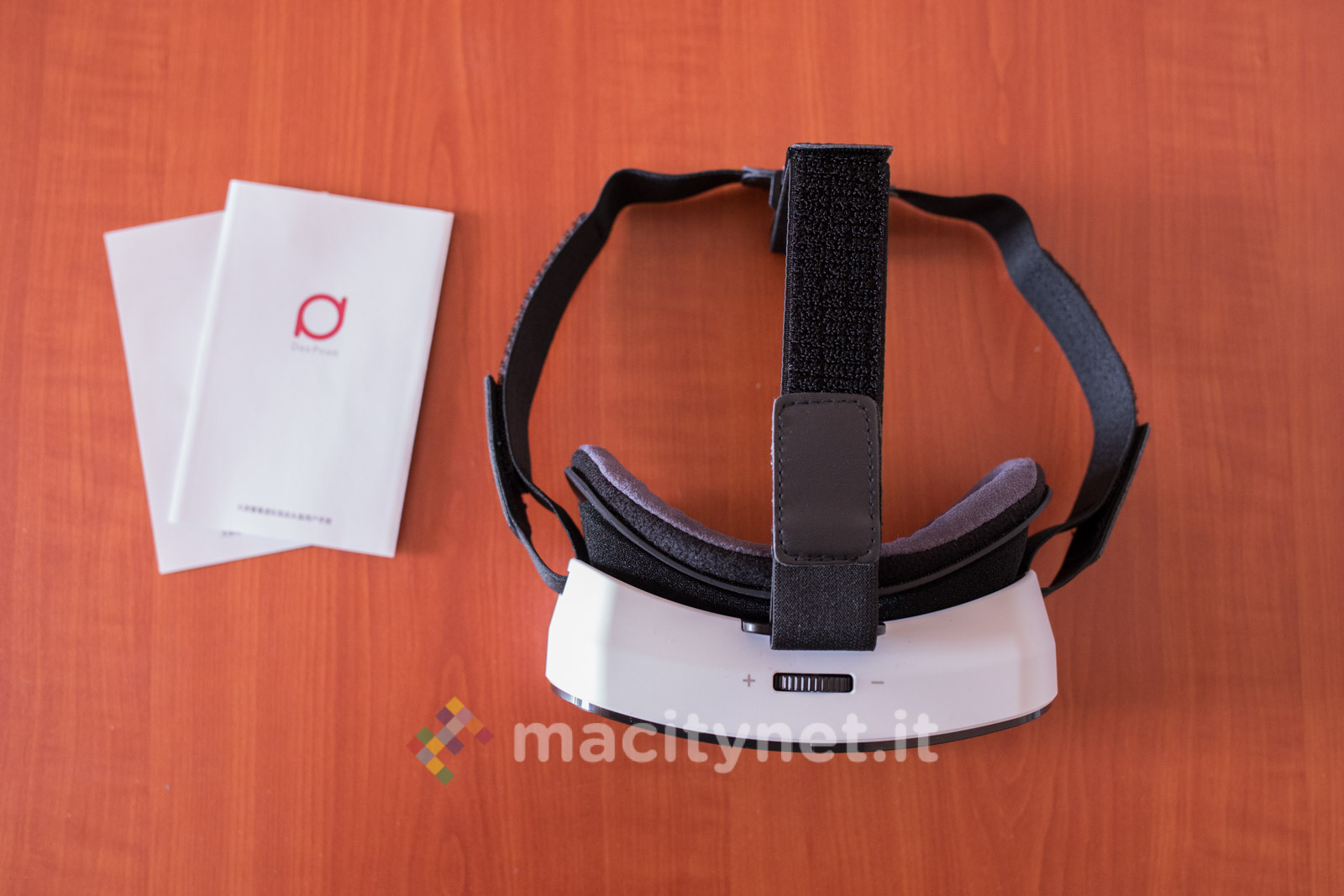 Se fino a questo punto abbiamo trovato soltanto punti a favore per il visore di Deepoon, il primo e forse unico difetto emerge proprio in questa fase. Non essendoci un cassetto che mantiene il telefono perfettamente in sede, è probabile che l’immagine non risulti perfettamente a fuoco. Alla combinazione di ghiera e selettori va così trovato il giusto posizionamento per lo smartphone, che si dovrà spostare in tutte le direzioni a piccoli passi fino a centrare perfettamente l’immagine.