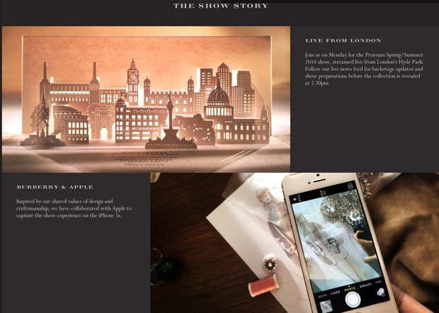 Gli utenti di tutto il mondo potranno ammirare le foto e i video realizzati con iPhone 5s che verrà utilizzato da Burberry non solo per catturare la sfilata ma anche per il dietro le quinte, i preparativi per l’evento e i dettagli dei prodotti. Foto e video saranno disponibili sui canali social di Burberry mentre la sfilata sarà trasmessa in diretta streaming sul web anche sul sito web di burberry.