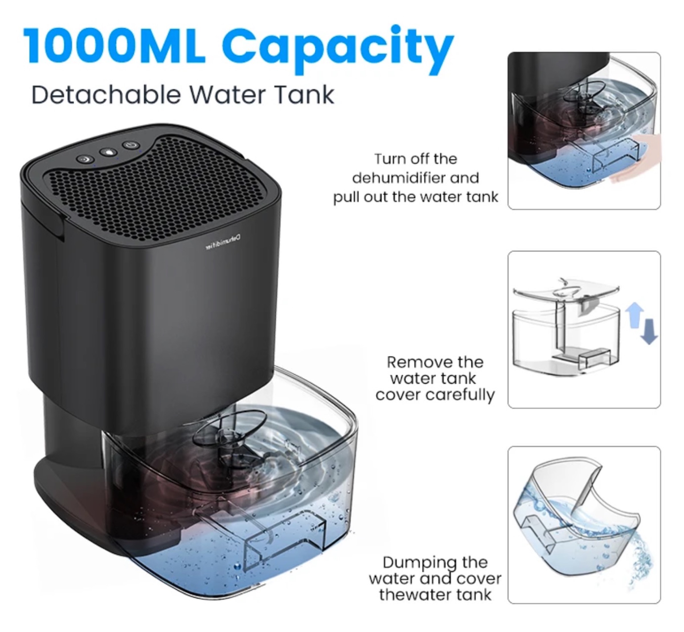 Prendendo come esempio una stanza tra gli 11 e i 20 metri quadrati ed una temperatura media di 30°C e una percentuale di umidità pari all’80%, riesce a raccogliere fino a 350 ml in una sola giornata, portando l’umidità al 45%.