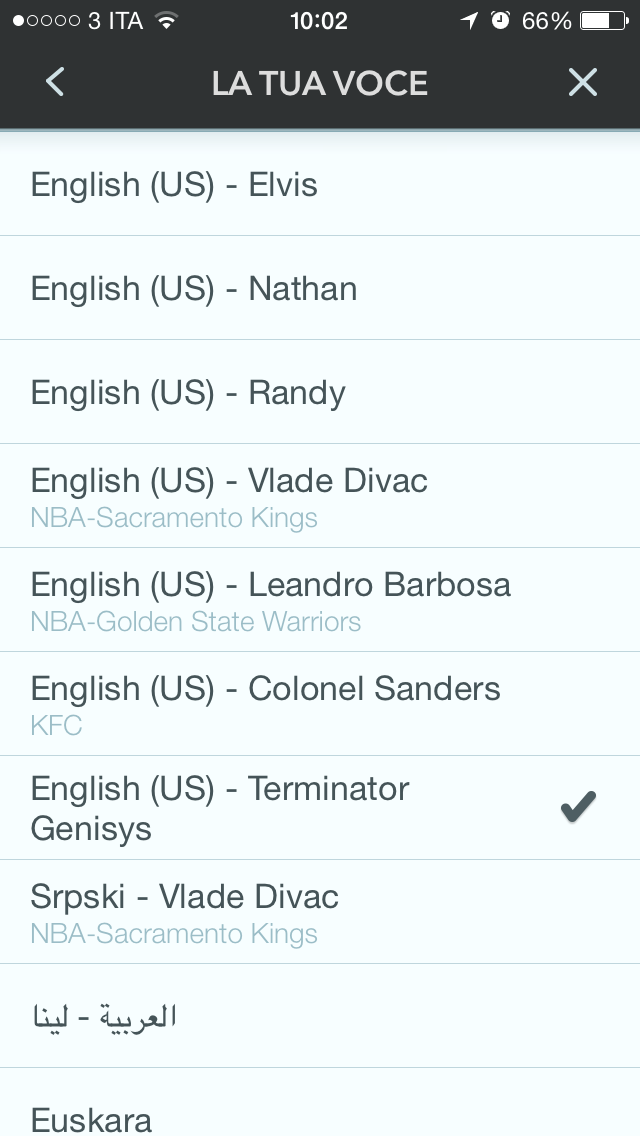 Il pacchetto vocale con le indicazioni stradali di Terminator è disponibile anche per gli utenti italiani di Waze, anche se naturalmente il vocale è in Inglese. Per ottenerle occorre aprile le impostazioni di Waze, entrare nella sezione suono e scorrere fino a quando si trova il pacchetto desiderato, selezionabile e scaribabile con un tap. Questa originale campagna di marketing sembra però avere una durata limitata: USA Today dichiara che questo pacchetto vocale sarà rimosso verso la metà del mese di luglio.