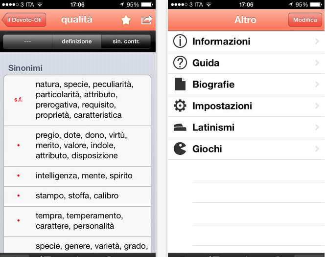 Il Devoto-Oli per iOS è l’edizione integrale delle versione su carta, in più, include una funzione che consente di ascoltare l’esatta pronuncia della parola cercata. In tutto ci sono 150.000 definizioni; 40.000 locuzioni e modi di dire; 35.000 lemmi, ie c’è perfino una sezione dedicata ai sinonimi e contrari tratti dal Devoto-Oli dei Sinonimi e Contrari Le Monnier.