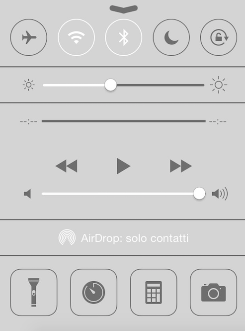 Tra le novità funzionali e grafiche più interessanti che Apple ha introdotto con gli ultimi aggiornamenti di iOS vi è il Control Center. Per richiamare questa finestra di controllo è sufficiente, dalla home page, trascinare il dito dalla parte bassa dello schermo verso il centro. In questa finestra è possibile attivare o disattivare alcune funzioni rapide, come la modalità aereo, il wifi, il bluetooth, la modalità non disturbare e il blocco della rotazione schermo. Altresì, è possibile anche regolare volume e luminosità dello schermo, oltre a poter aprire velocemente alcune applicazioni utili, come calcolatrice, torcia o macchina fotografica.