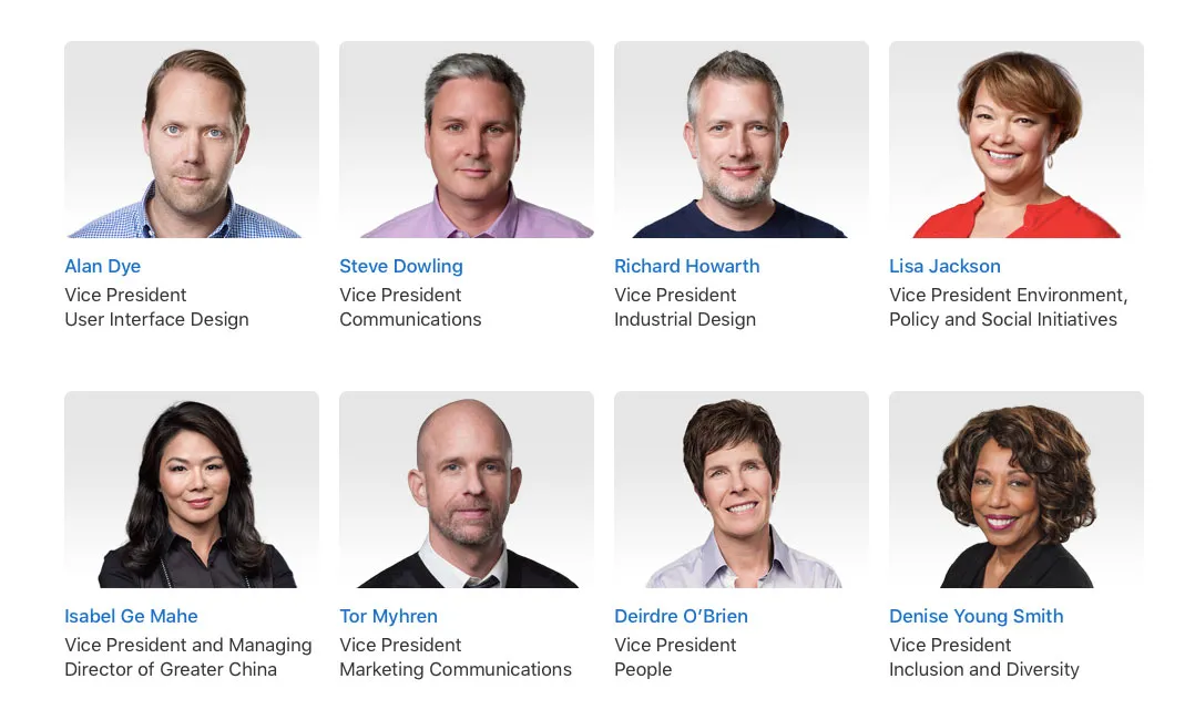 Dai profili nella pagina dei dirigenti apprendiamo, come detto ieri, che Craig Federighi supervisiona non solo lo sviluppo di iOS e macOS ma anche di Siri, incarico prima di Eddy Cue. Quest’ultimo continua a occuparsi di iTunes Store, Apple Music, Apple Pay, Apple Maps, iCloud, le app iWork e iLife