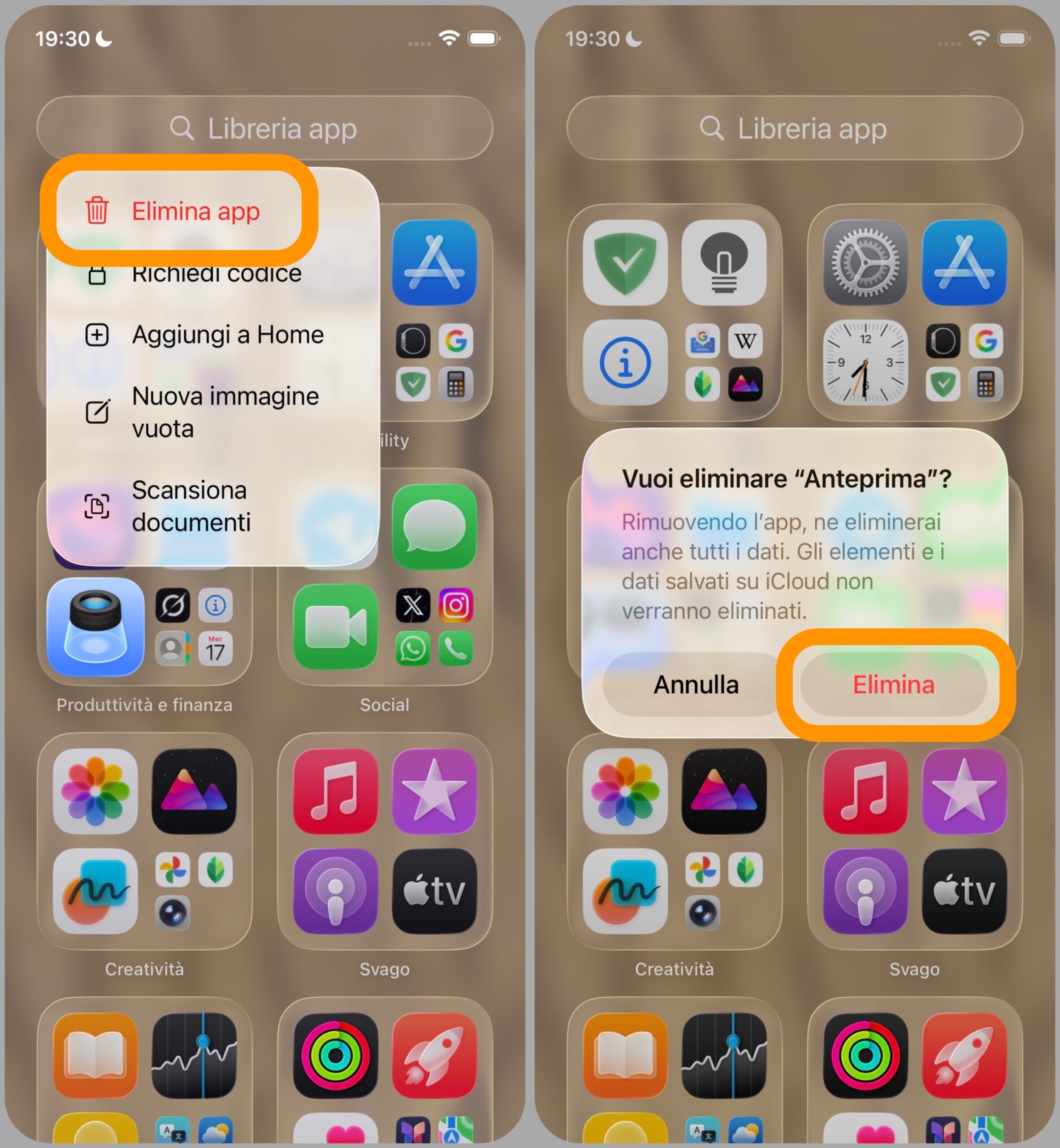 Se non volete proprio usare Anteprima e preferite che i file si aprano sempre nell’app File (o in altri visualizzatori come l’app Libri per i PDF) allora potete semplicemente eliminare l’app Anteprima dal vostro iPhone o iPad. Nel caso, fate così: