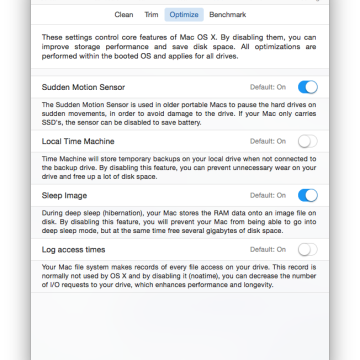 C’è poi la funzione per abilitare il Trim e per gestire manualmente le funzionalità del comando che sui drive di Apple adesso è supportato sempre ma non attivato: le funzionalità di garbage management del microcontroller dell’unità SSD sono più che sufficienti a gestire la pulizia delle celle di memoria senza bisogno di ricorrere a un comando di più alto livello.