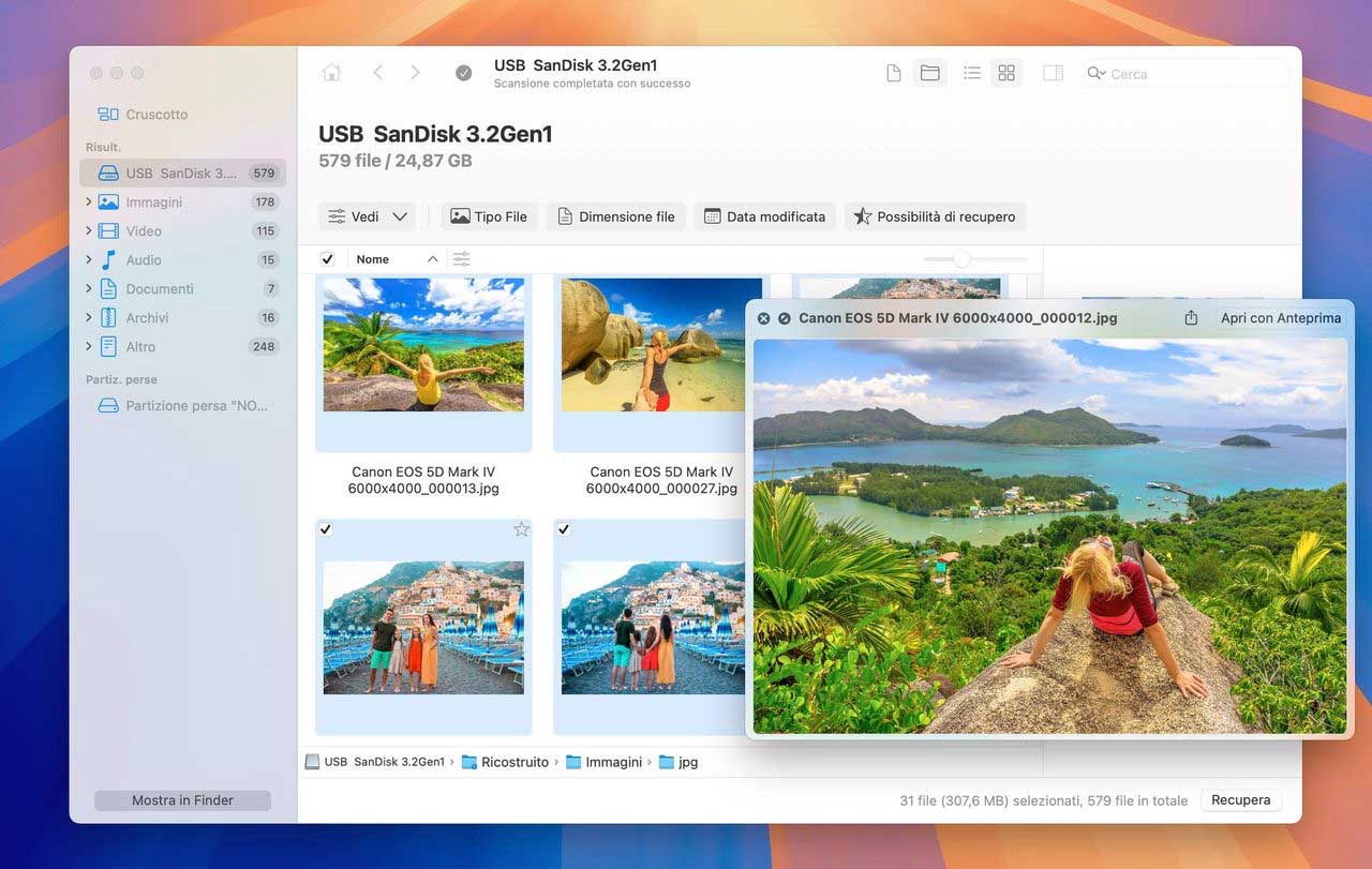 DiskDrill 6 offre una funzionalità denominata Advanced Camera Recovery per il ripristino di video e foto frammentate da fotocamere, droni, dashcam, telescopi smart, microscopi e altri dispositivi ancora.