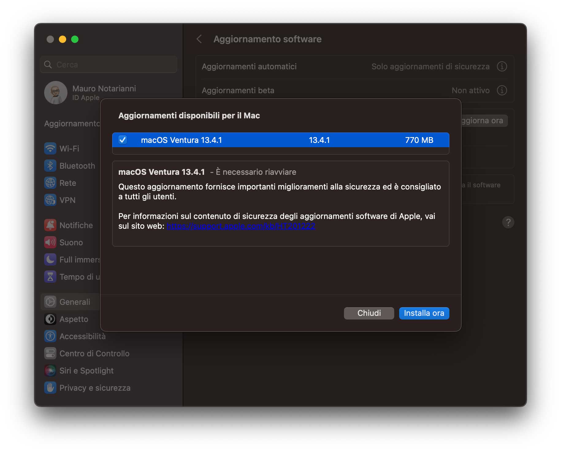 L’update a macOS Ventura 13.4.1 arriva a circa nove mesi dalla prima versione ufficiale del nuovo sistema e integra principalmente fix legati alla sicurezza e la soluzione ad alcuni bug.
