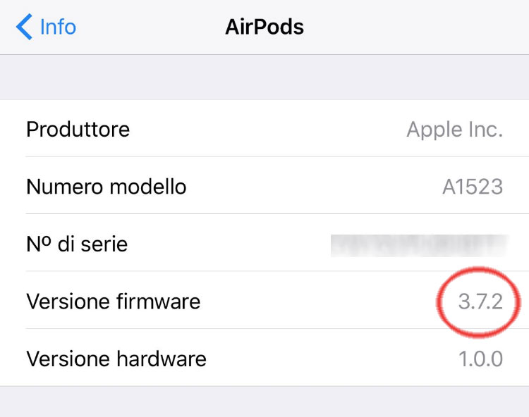 È possibile verificare “manualmente” il numero di versione del firmware andando sull’iPhone in Impostazioni > Generali > Info > AirPods. Per fare in modo che l’installazione venga effettuata occorre che gli AirPods siano riposti all’interno della custodia batteria di trasporto, che il case sia collegato all’alimentazione, infine che l’iPhone o il dispositivo associato sia nelle vicinanze degli auricolari e connesso alla rete Wi-Fi. Apple aveva già rilasciato un aggiornamento firmare per gli AirPods a febbraio.