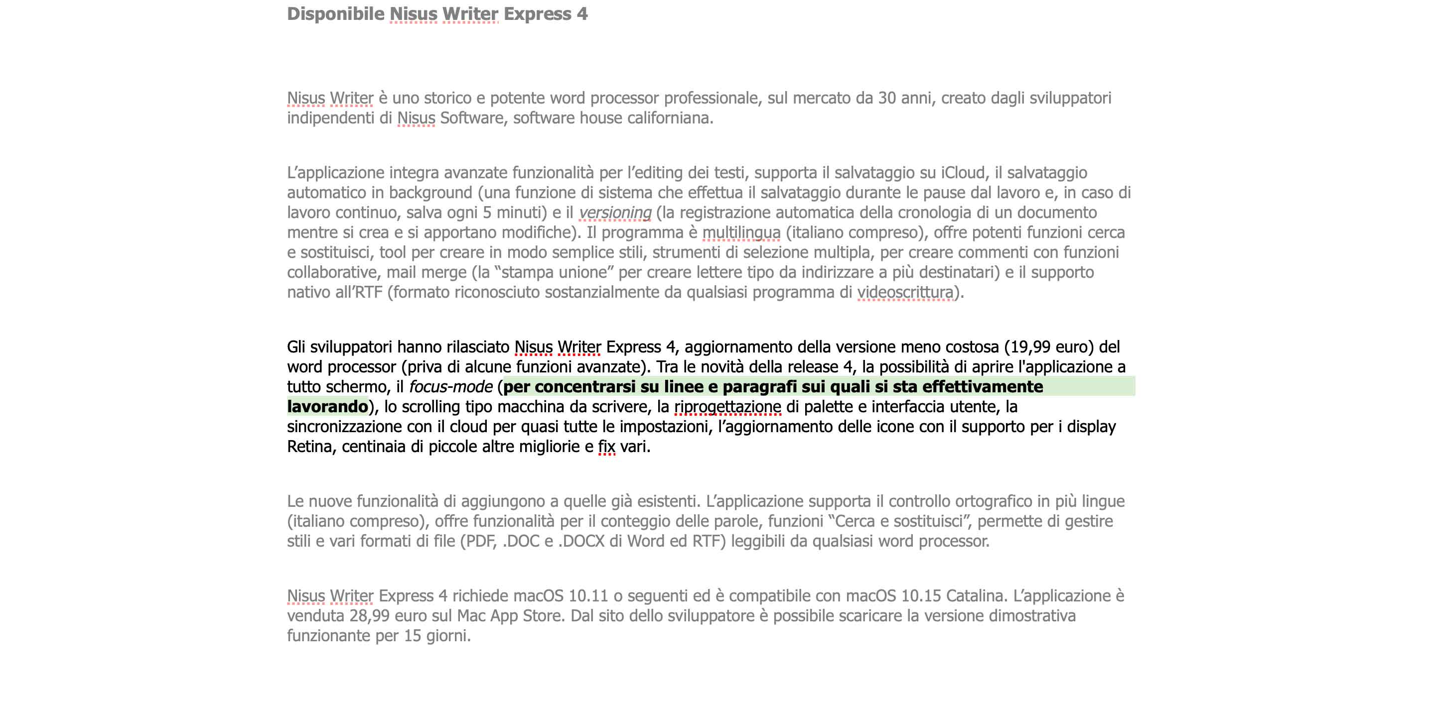 Disponibile Nisus Writer Express 4, pronto per macOS Catalina
