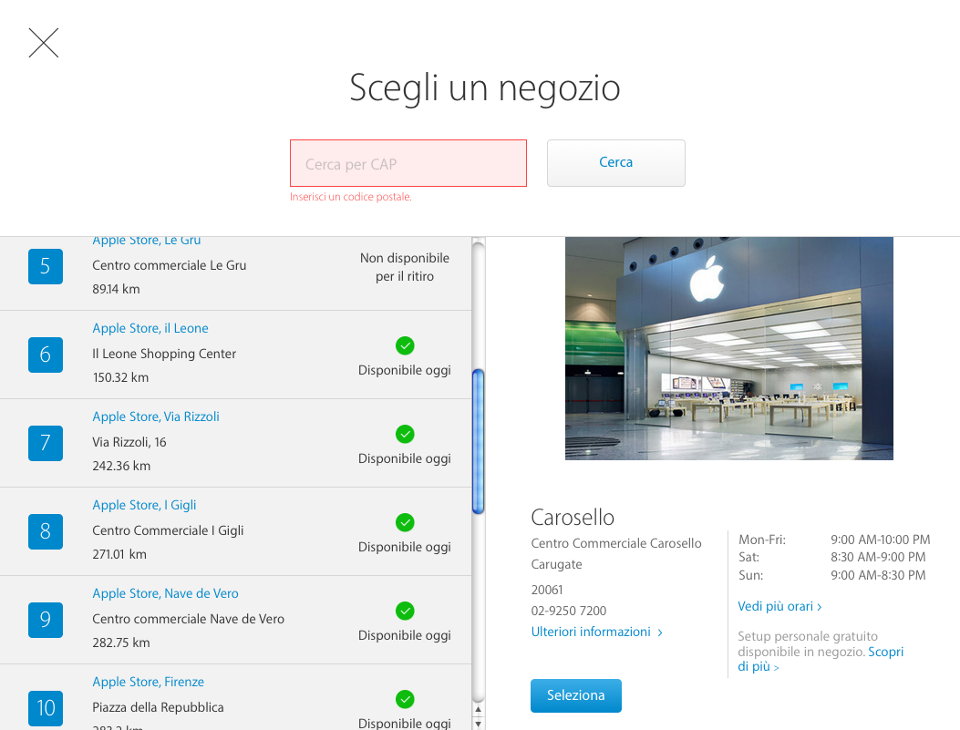 Una verifica su Apple Store attuata qualche minuto fa evidenzia che all’ordine on line, pagando con carta di credito, corrisponde la possibilità di recarsi successivamente addirittura entro la giornata, presso la maggior parte dei negozi Apple italiani per il ritiro. Al momento i cui scriviamo solo quattro store sembrano non offrire questa possibilità: Orio al Serio, Le Befane, Le Gru e Fiordaliso. Non è possibile sapere se il prodotto è esaurito o se non è stato ancora consegnato, ma è possibile che la situazione possa normalizzarsi del tutto anche presso questi punti vendita.