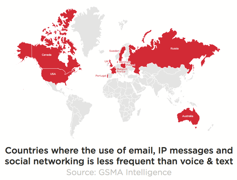 - I tradizionali SMS sono ancora più utilizzati rispetto ad altri sistemi di messaggistica in molti mercati maturi, inclusa Francia e Stati Uniti