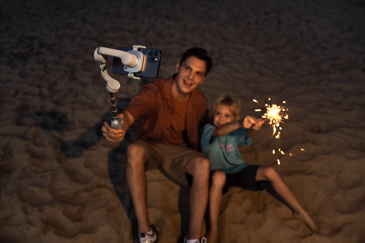 Un altro punto di forza è che per la prima volta su un prodotto di questo tipo DJI ha integrato un manico telescopico di 215mm estendibile, per consentire di inquadrare più amici in un unico selfie, ma anche di riprendere in modo creativo da angolazioni diverse e originali.