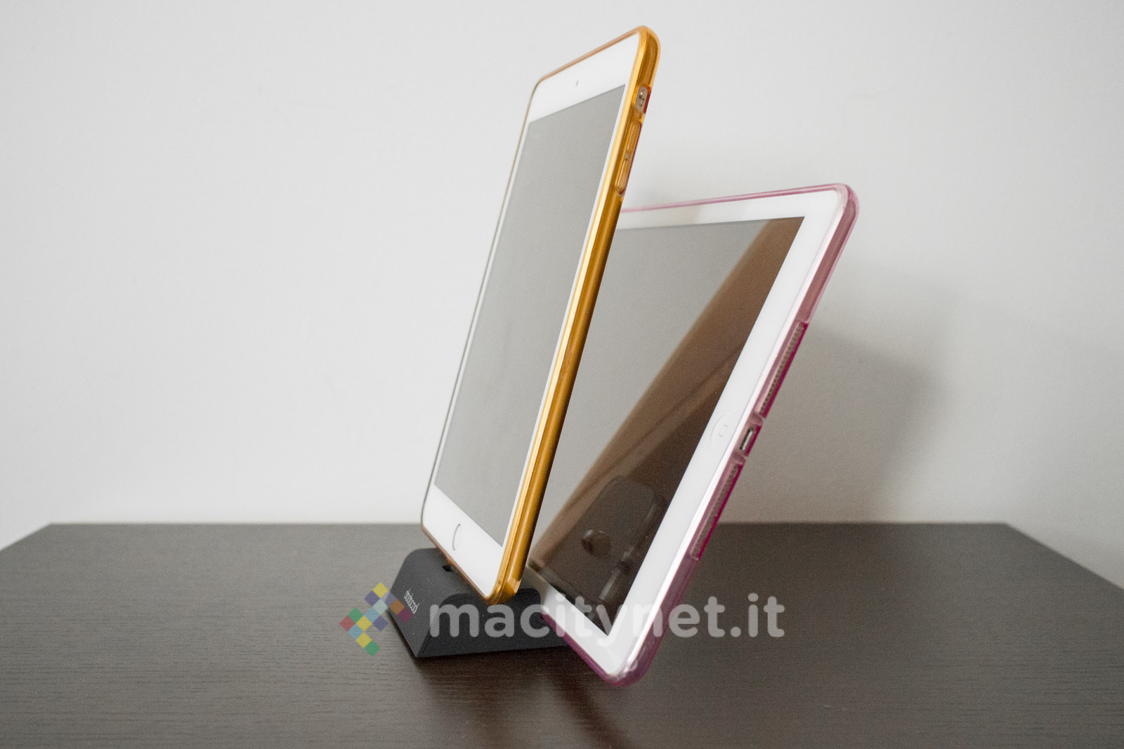 E’ possibile sfruttare il supporto anche per ricaricare iPad e l’apertura sul retro, come accennato in precedenza, permette di sostenere un secondo dispositivo inclinato sul retro, anche se da questo punto di vista sarà necessario distribuire correttamente i pesi.