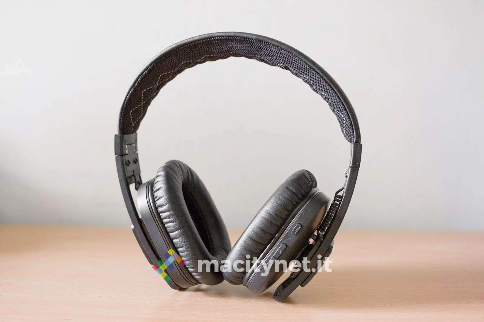 L’archetto è rivestito esternamente in simil-pelle, l’interno invece è di stoffa, a proteggere l’imbottitura in gomma piuma alla quale è bloccata attraverso cuciture a vista con trama romboidale. La cassa esterna dei padiglioni è invece in plastica satinata mentre l’imbottitura in gomma piuma è rivestita in simil-pelle. Sono molto ampi e riescono a circondare completamente l’intero padiglione delle orecchie.