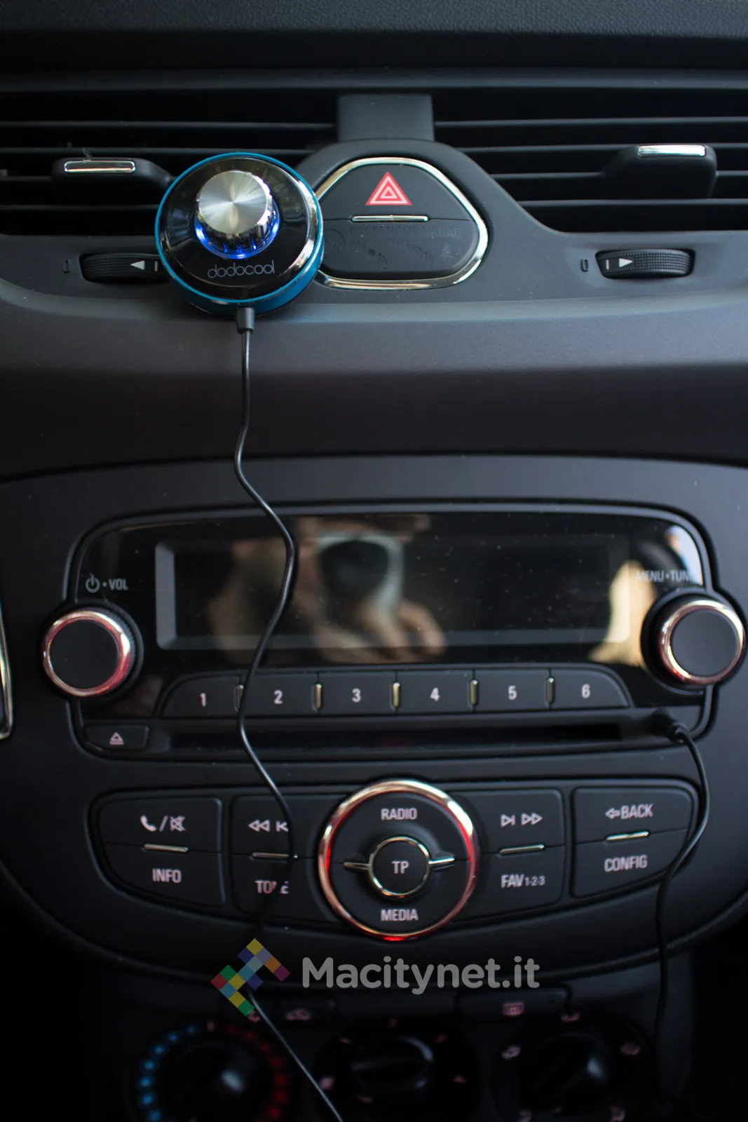Posizionata la piastra magnetica nel punto più comodo per interagirvi senza distrarsi dalla guida, non resta che collegare il ricevitore all’autoradio tramite AUX ed alimentarlo tramite il collegamento della spina USB.