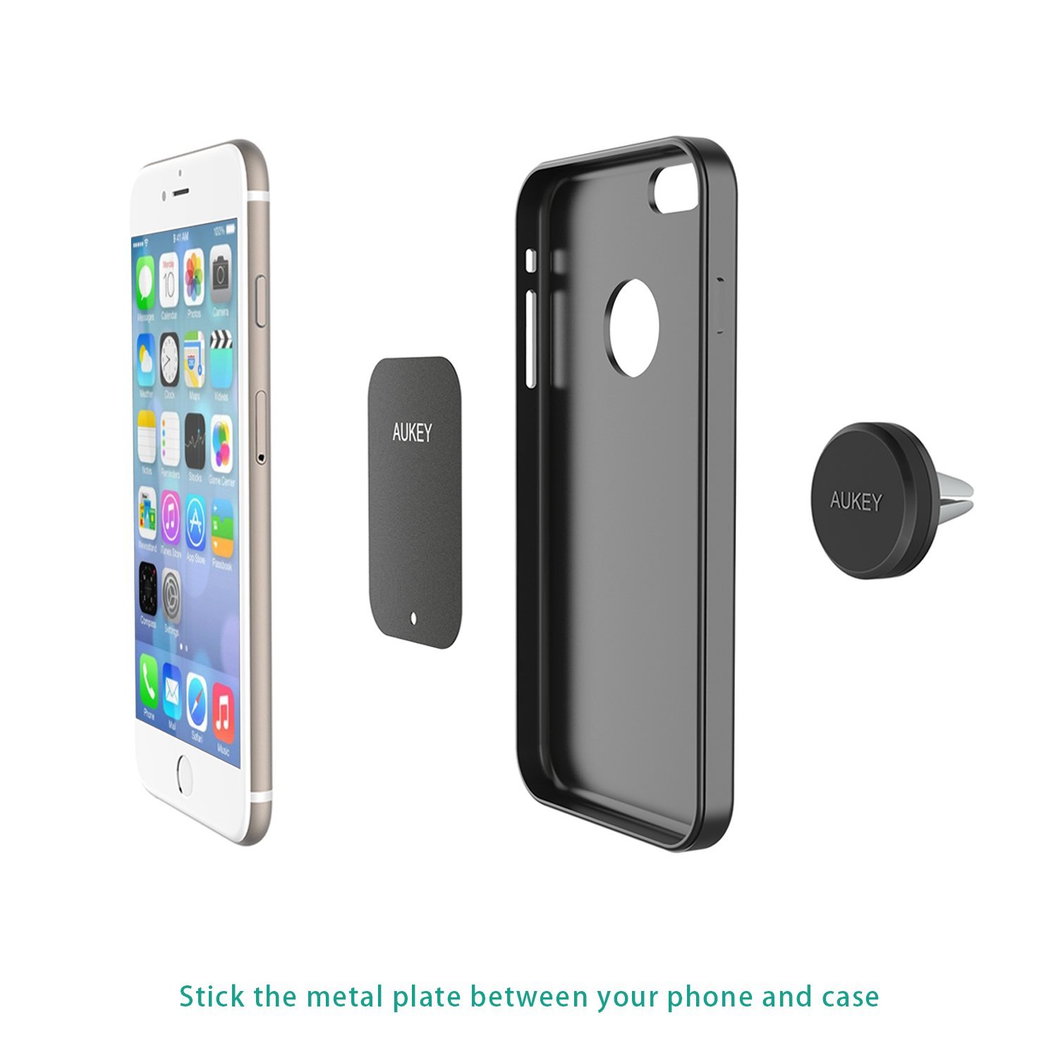 All’Aukey HD-C5 abbiamo dedicato un articolo specifico, con una presa di contatto che vi invitiamo a leggere. In sintesi qui sottolineiamo la buona qualità del prodotto realizzato in plastica robusta e con una ganascia gommata che aumenta l’aderenza con la bocchetta e la presa della piccola morsa. Il “cuore” dell’accessorio è un disco magnetico che nella confezione viene accompagnato da due lastre e in metallo adesive, una più piccola circolare, con un adesivo non invasivo che si fissa sul retro del telefono e, se lo si desidera, può eventualmente essere rimossa in futuro senza danneggiare il telefono; una più grande, di forma rettangolare, ha invece un’adesivo 3M e si può attaccare saldamente all’interno di una custodia, tra quest’ultima ed il telefono, assicurando così un’ottima presa del dispositivo al supporto senza necessariamente doverlo rimuovere dalla cover. Usare l’adesivo non è comunque obbligatorio, né fondamentale.