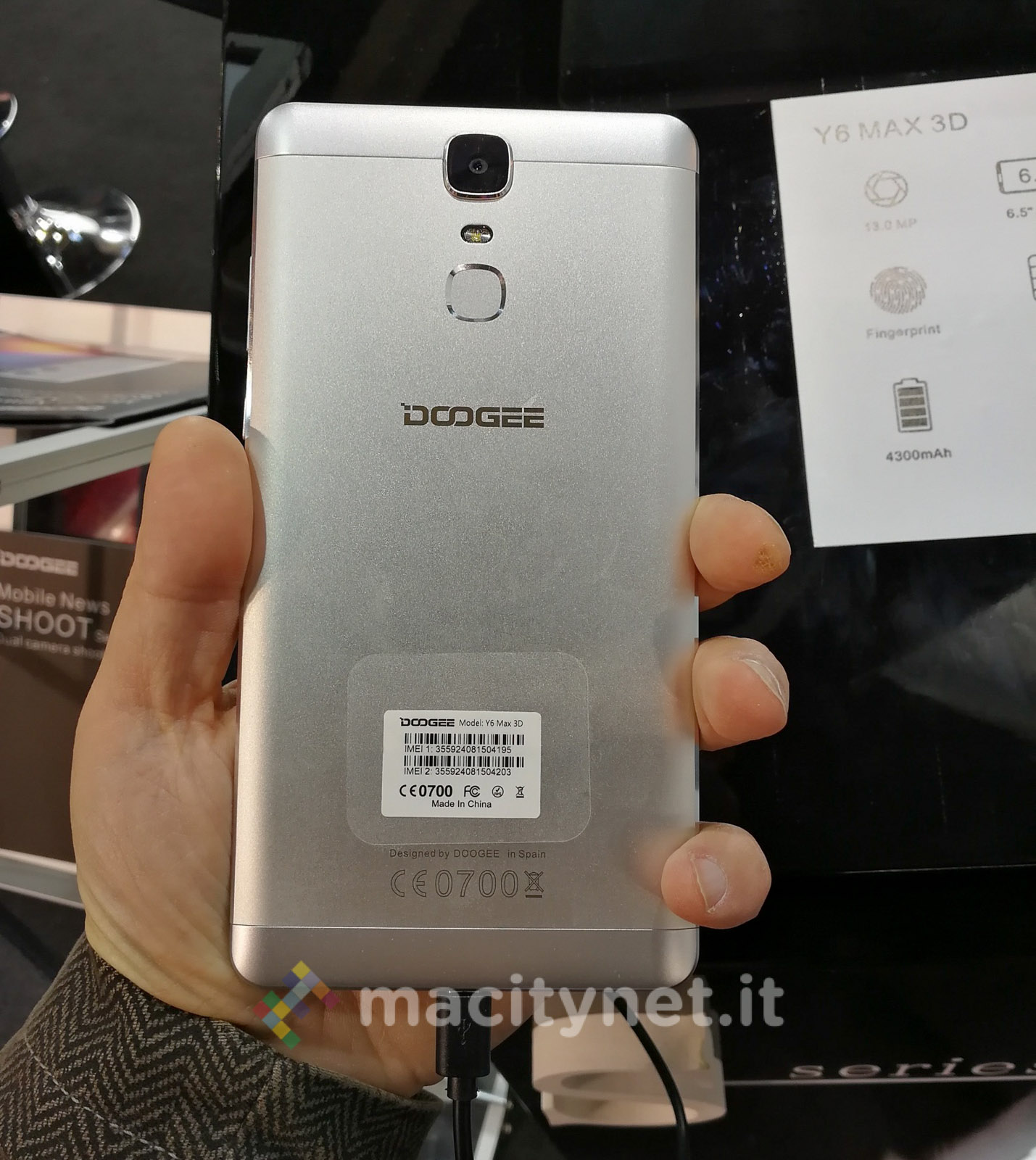 Tra le altre novità di Doogee in mostra a Barcellona c’è il phablet Y6 Max 3D con ampio schermo da 6.5 pollici che, come suggerisce il nome, assicura la fruizione di alcuni contenuti in tre dimensioni senza tra l’altro l’uso di occhiali ad hoc.