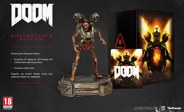 La Collector’s Edition del nuovo Doom proposta in Italia a 129,99 euro include una statuetta del micidiale Revenant, con base rotante e illuminata, alta 30 centimetri e creata a partire dai file originali del gioco per la massima fedeltà. Nella scatola anche il gioco in custodia di metallo più vari oggetti e gadget digitali per personalizzare armatura e scontri nel gioco e online. Il Nuovo Doom può già essere prenotato per Xbox One, Playstation 4 e anche PC e, ancora una volta, purtroppo niente Mac.
