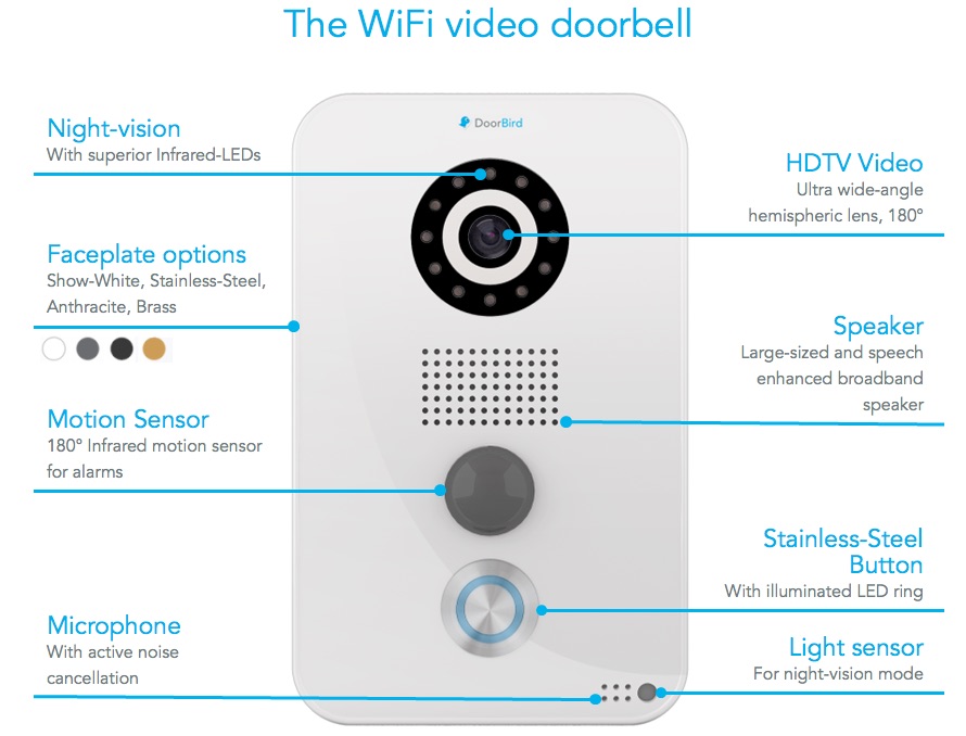 E’ un video-campanello Wi-Fi di facile installazione che non richiede complicate regolazioni su NAT o Dyndns e che si collega al vostro campanello esistente: attraverso DoorBird potete vedere, ascoltare e parlare ai vostri ospiti ovunque voi siate direttamente da tablet e smartphone Android o iOS.