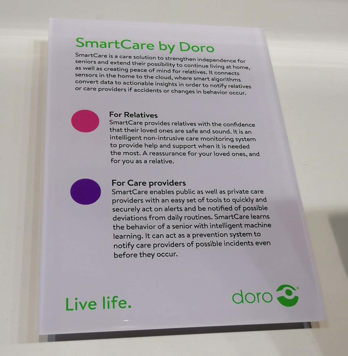 Doro è un’azienda Svedese specializzata nello sviluppo di telefonia mobile semplificata e di servizi che aiutano gli anziani a condurre una vita più attiva mentre Doro Care, parte del gruppo, offre invece soluzioni per la teleassistenza, per le persone più anziane e i disabili, perché possano vivere una vita più sicura all’interno delle loro abitazioni. Nel 2018 l’azienda ha registrato un fatturato netto di 186 milioni di euro.