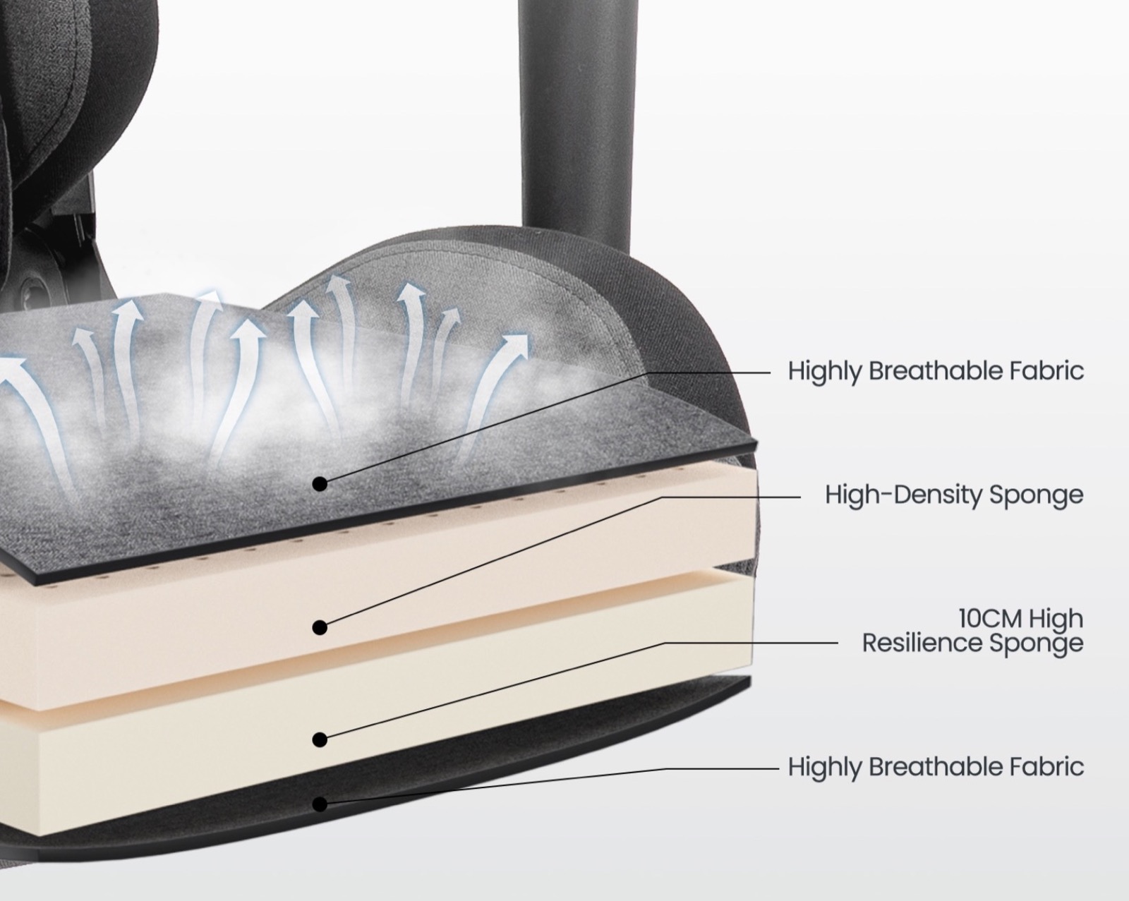 Può sostenere una persona per un peso massimo di 130 chili ed è ottima anche dal punto di vista costruttivo della copertura: presenta infatti un rivestimento in tessuto altamente traspirante e perciò comodo anche in estate in quanto è delicato sulla pelle ma allo stesso tempo è resistente all’usura. Inoltre il cuscino della seduta è realizzato in morbida spugna ad alta densità, evitando così dolore quando si sta seduti per troppo tempo.
