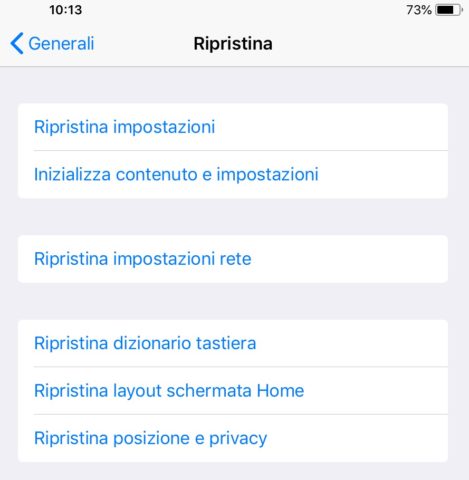 Se tutto quanto sopra non ha funzionato è possibile provare le opzioni di reset. Per farlo è sufficiente aprire Impostazioni, andare su Generali, poi aprire il pannello Ripristina e, da qui, provare Ripristina Impostazioni e/o Ripristina layout schermata Home.