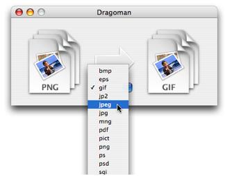 DragoMan 1.3 è la nuova versione di un interessante convertitore drag & drop in grado di convertire da un formato ad un altro vari tipi di file: immagini, suoni, documenti, file compressi, ecc. E’ possibile convertire in batch più file contemporaneamente e supporta una vasta gamma di file: JPEG, PNG, PDF, PostScript, EPS, PSD e TIFF per le immagini; AIFF, WAV, SND, AU ed Apple Core Audio (CAF) per l’audio; RAR, StuffIt, 7zip, DMG, Gzip, Bzip2 e ZIP per gli archivi compressi.