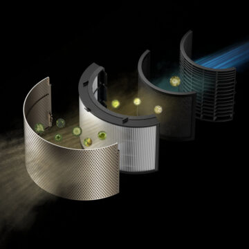 Il sistema di filtrazione dell’aria è composto da quattro strati: un pre-filtro, un rivestimento antibatterico agli ioni d’argento, un filtro H13 True HEPA e uno strato ai carboni attivi, che cattura il 99,97% delle particelle e neutralizza gli odori e i gas nocivi.