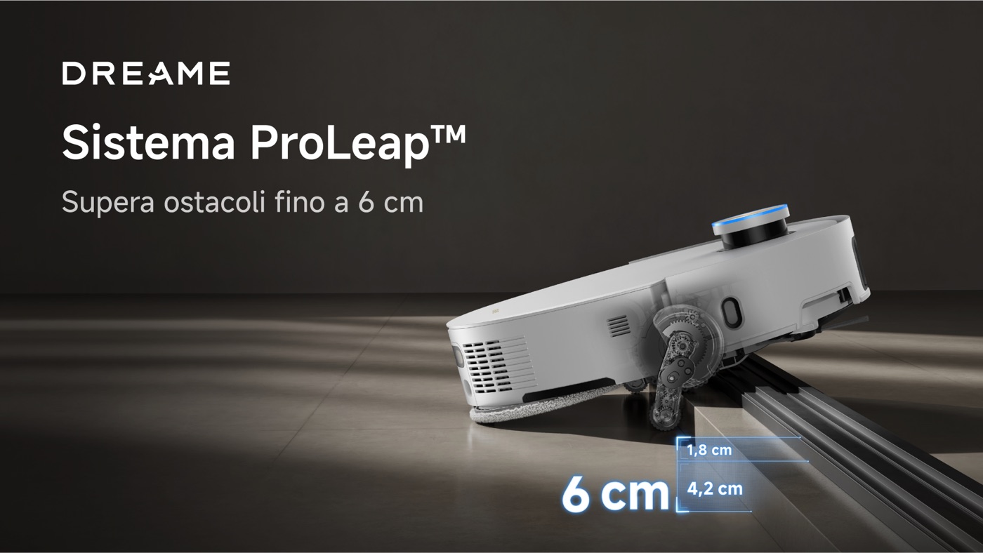 La capacità di sollevarsi e superare gli ostacoli è in reltà la soluzione per tanti utenti che dispongono di ambienti divisi da un piccolo scalino o da una soglia, che hanno una loggia o un balcone protetto o una veranda e che vogliono approfittare del robot per pulire ambienti contigui ma non esattamente sullo stesso livello.