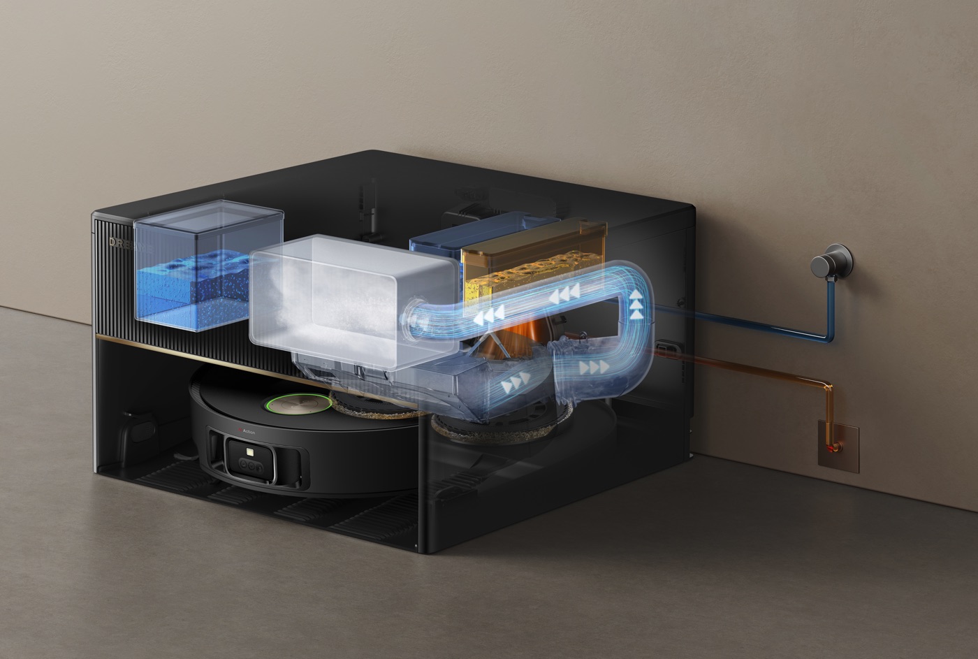 Per chi preferisce un’opzione più compatta senza rinunciare alla potenza di pulizia, Dreame presenta X50 Master. Dotato delle stesse funzionalità dell’X50 Ultra Complete, l’X50 Master è dotato di una stazione base elegante e ultracompatta di soli 24,9 cm di altezza che permette l’incasso in diversi mobili tra cui quelli sottolavello. Il design salvaspazio può integrarsi nell’arredo e offrendo anche sistemi di riempimento e scarico dell’acqua completamente automatici per una maggiore comodità.