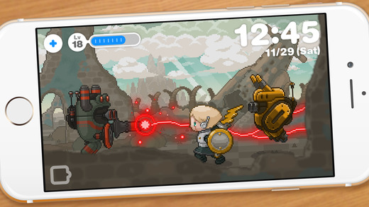 Sembra davvero strano a disrsi, ma è così. Ciò che l’utente dovrà fare, prima di andare a letto ogni sera, sarà impostare una sveglia. Al sorgere del sole, quando la sveglia suonerà, il giocatore dovrà premurarsi di premere il pulsante blu centrale. In questo modo, il robot protagonista dell’avventura andrà a dormire con l’utente, ma si risveglierà l’indomani, iniziando e proseguendo l’avventura in totale autonomia. Non c’è un vero e proprio gameplay, dato che l’utente potrà limitarsi ad impostare la sveglia, senza dover affrontare alcuna missione. Potrà certamente, di tanto in tanto, aprire l’applicazione per guardare l’evolversi della storia e del personaggio, che incrementerà i suoi punti esperienza in modo del tutto autonomo. Nel caso in cui, proprio durante la visione di una battaglia, l’eroe dovesse perire è possibile recuperare in fretta le forze eseguendo tap continui a schermo. Insomma, un RPG che di videoludico ha ben poco, e che suona tanto come una sveglia interattiva in cui poter ammirare un robot che avanza autonomamente nella storia, accumulando punti esperienza ed affrontando battaglie.