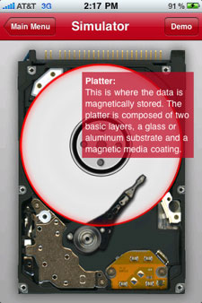 Se non avete mai sentito il rumore di un disco rigido difettoso, siete fortunati: è un disastro da non augurare a nessuno poiché spesso è molto difficile recuperare i dati, tranne che in particolari casi, ricorrendo però a ditte specializzate. Ma qual è il rumore generato da un disco rigido difettoso? Dipende dal tipo di guasto. Potete ad ogni modo togliervi la curiosità , scaricando un applicazione gratuita per iPhone, iPod Touch e iPad denominata DriveSaver, un simulatore di hard disk disastrati creato da una società  specializzata in data recovery. Ottime animazioni illustrano il funzionamento dei piatti del disco, l’asse di rotazione e motore (detto “spindle”, il meccanismo centrale del disco), gli strati magnetici di memorizzazione e gli attuatori delle testine.