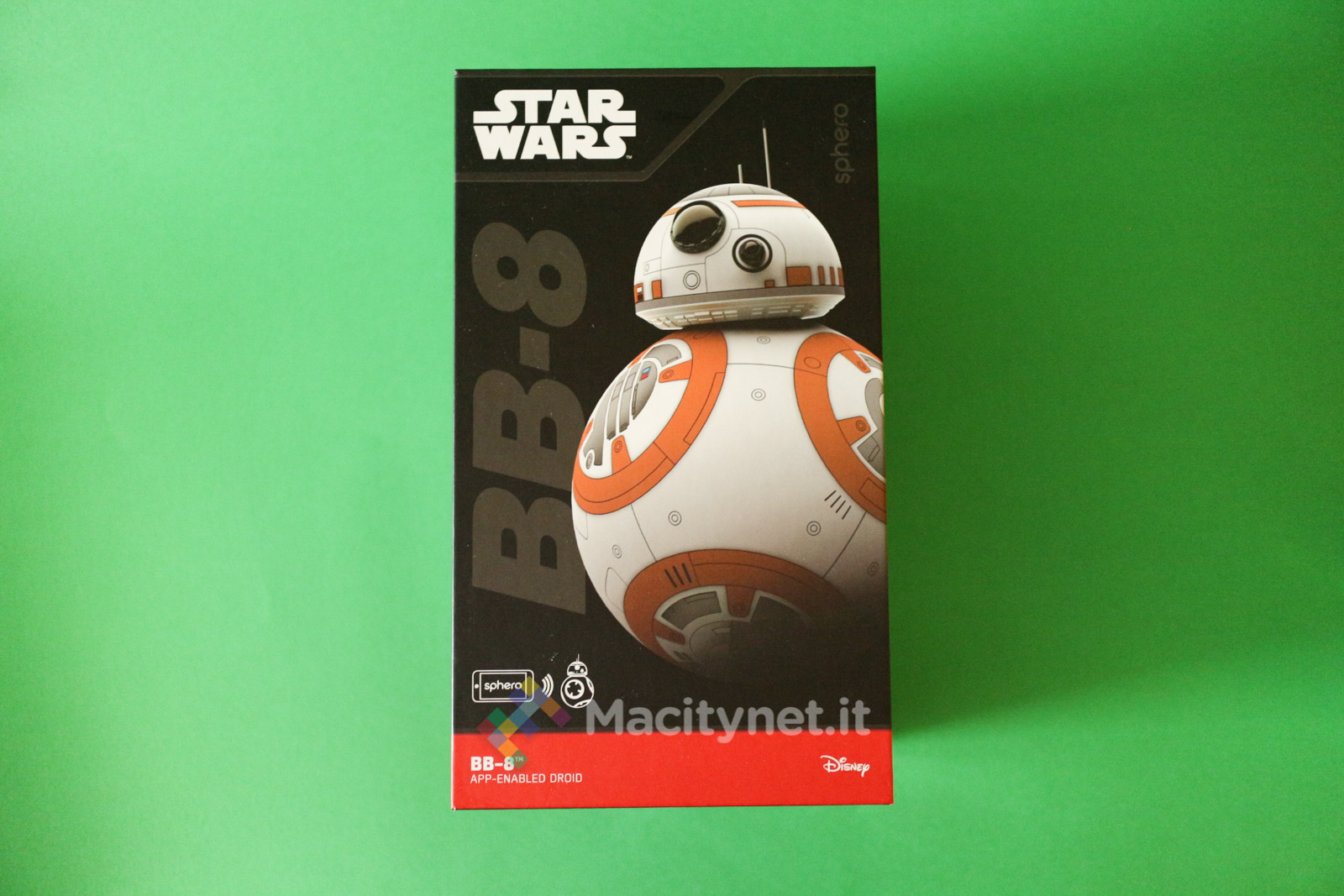 E’ proprio questa speciale forma che ha permesso a Sphero – produttore di giocattoli che già da diversi anni è sul mercato con l’omonima palla telecomandata tramite Bluetooth da un’app per iPhone – di realizzare una miniatura del droide BB-8 del tutto funzionante e fedele all’originale del film. La nostra redazione, da una parte incuriosita dal gadget e dall’altra amante della saga di Star Wars, ha deciso di prenderne uno in prova per guardarlo più da vicino e scoprire cosa offre questo simpatico amico robotico.