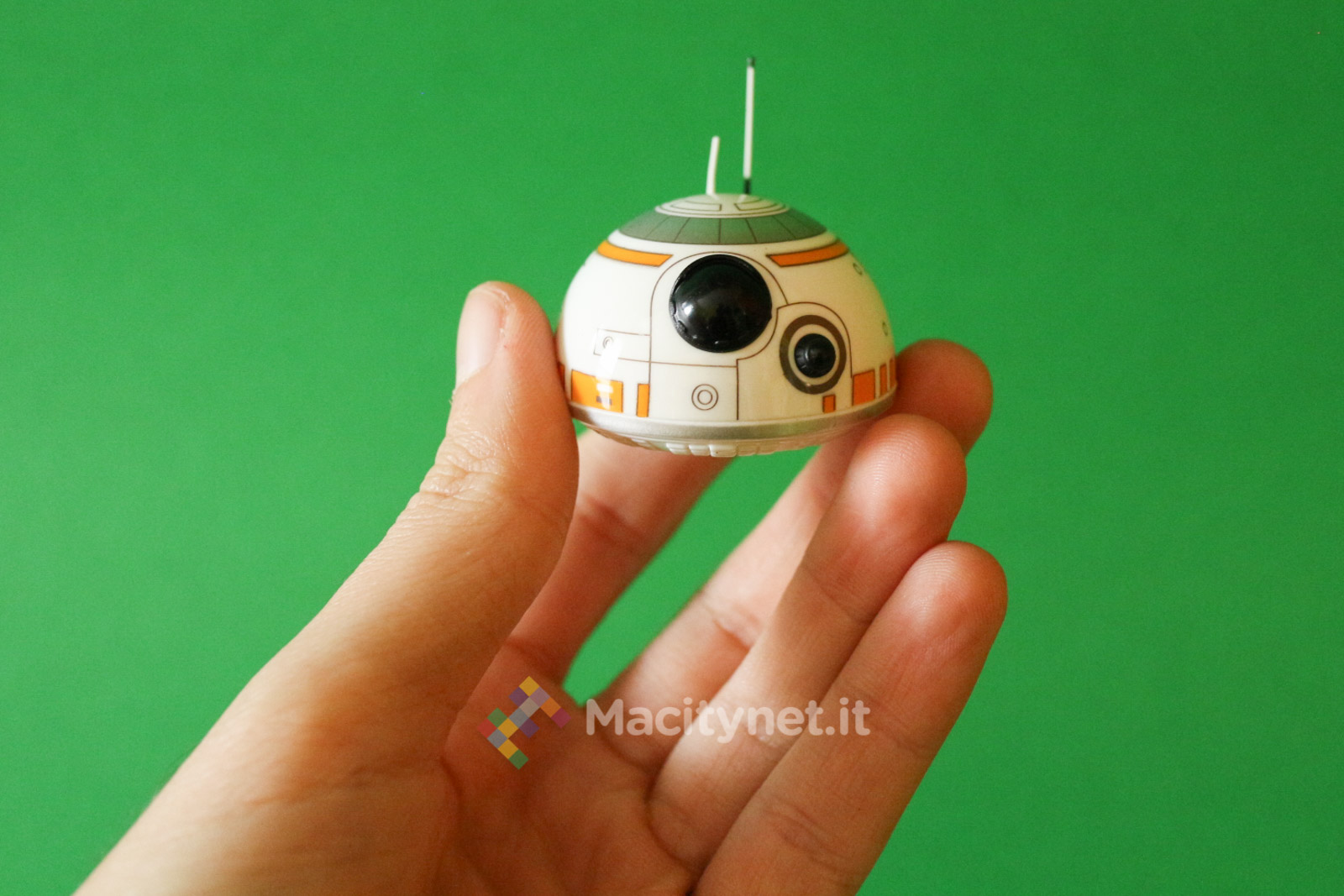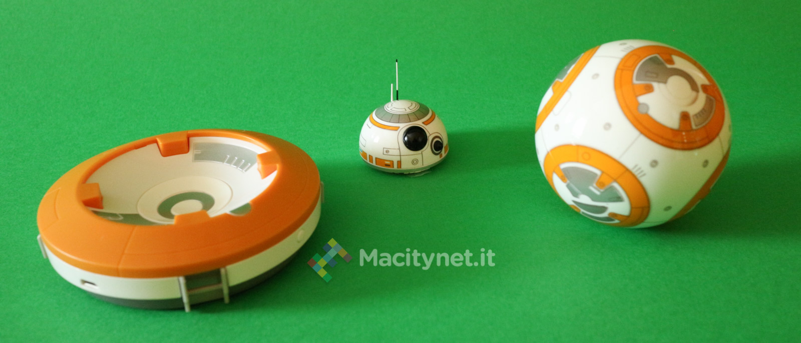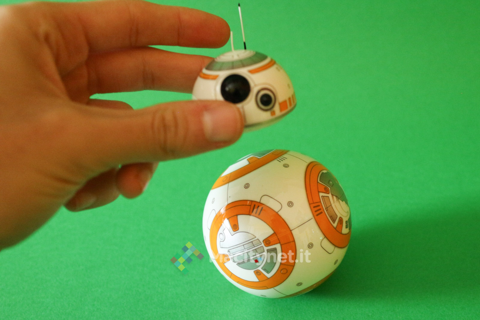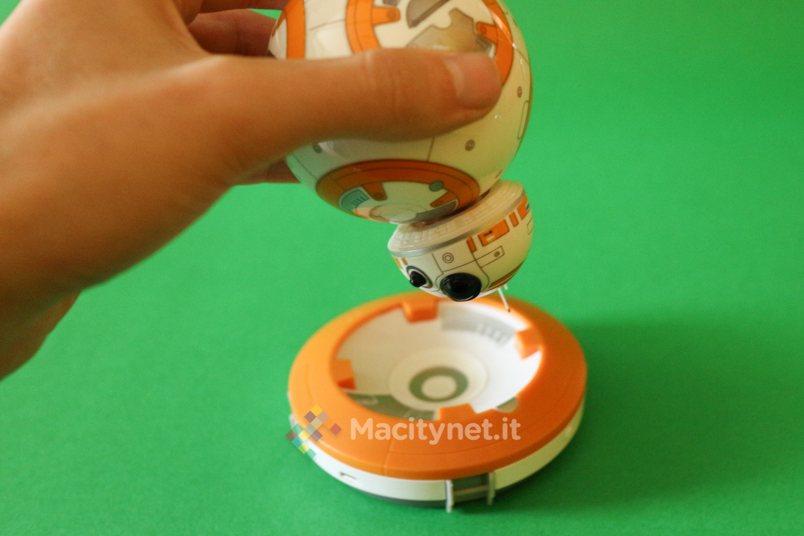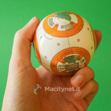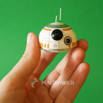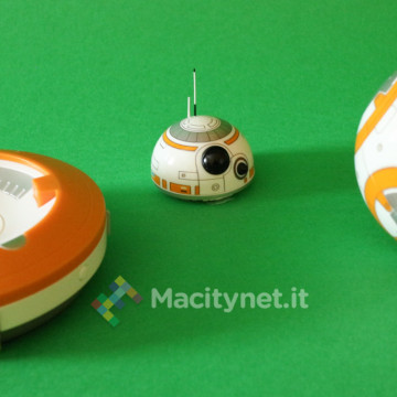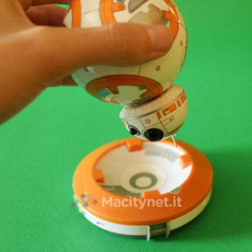 Per “costruire” il droide non bisogna far altro che avvicinare la testa al corpo (la sfera): in un lampo, grazie ad un magnete, le due parti si agganciano tra loro posizionando la testa perfettamente in cima al corpo, parallela al piano di appoggio. E’ grazie poi alle due rotelle in plastica incorporate nella base della testa che quest’ultima resterà perfettamente in bilico sopra la sfera mentre quest’ultima ruota e si sposta quando si controlla il droide attraverso l’app per smartphone, in pratica proprio come abbiamo già visto muoversi il corrispettivo personaggio del film nei trailer.