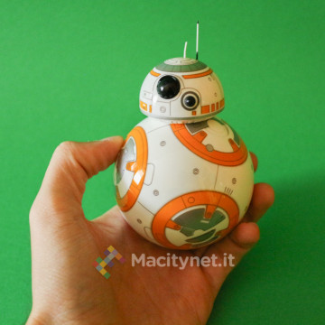 La trama stampata sul corpo del robot di Star Wars è poi ovviamente fedele al droide originale del film, fino al minimo dettaglio, con particolare cura anche alle antenne sufficientemente rigide ma che, almeno al primo contatto, danno l’idea di potersi rompere nel tempo a seguito di eventuali urti e cadute del droide.