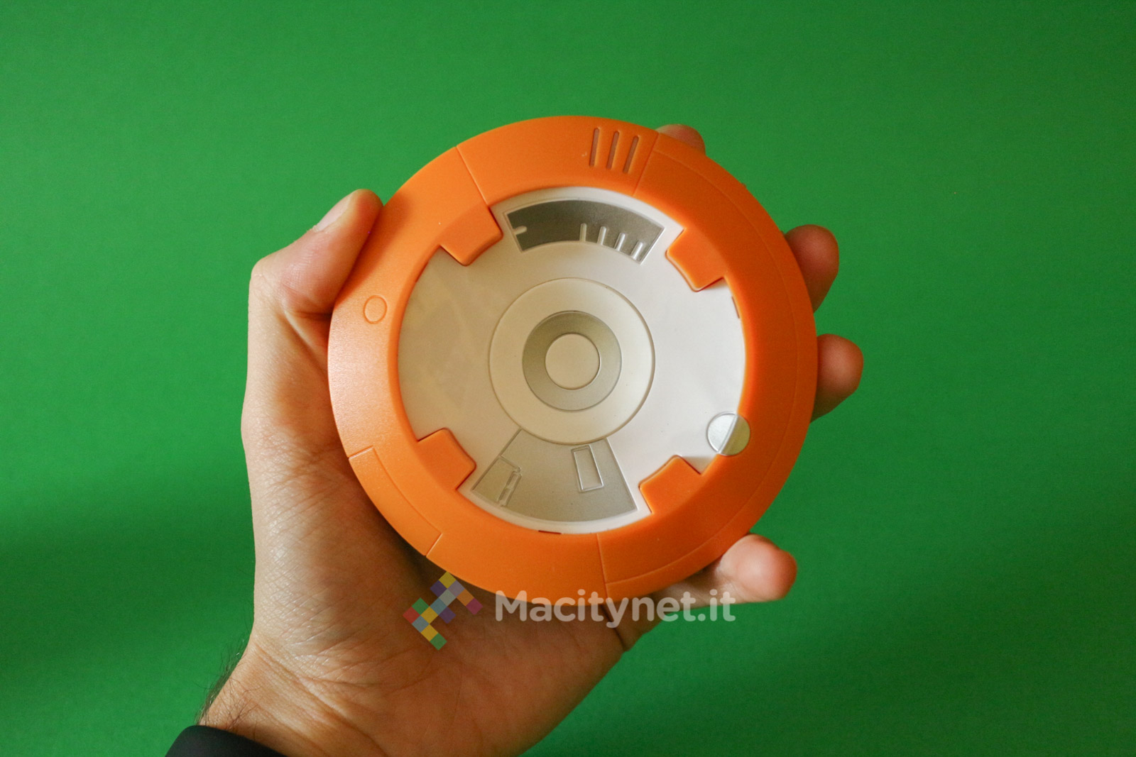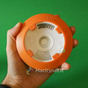 Per chi conosce già Sphero è sufficiente dire che forma, peso e dimensioni del droide BB-8 sono le stesse del giocattolo classico. A chi invece non ha mai sentito parlare di questo genere di prodotto diciamo che il corpo è poco più grande di una palla da tennis, abbastanza pesante (circa 800 grammi), in plastica rigida di ottima qualità, così come è abbastanza robusta la testa che si aggancia magneticamente alla sfera.