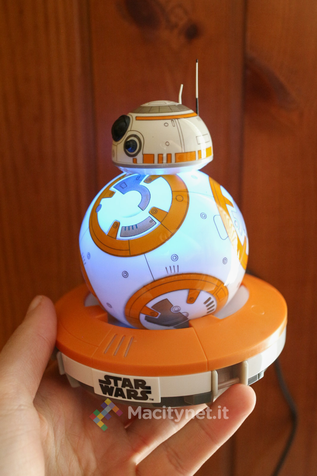 La prima cosa da fare, dopo aver montato corpo e testa, è collegare la base di ricarica ad una presa USB del computer o ad un alimentatore con USB tramite il cavo incluso nella confezione ed appoggiare il droide nell’apposita cavità. Il corpo si accenderà a conferma dell’avvio della ricarica mentre la testa, per i primi minuti, comincerà a muoversi, proprio come se il robottino “prendesse vita”.