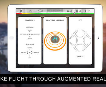 I vantaggi del drone in realtà aumentata sono numerosi: se sbagliamo una manovra e il drone cade non dovremo sobbarcarci costose riparazioni, scompare il problema delle batterie da ricaricare e sostituire, inoltre è possibile far volare il drone anche in condizioni meteo non ideali. Lo sviluppatore assicura che il modello di volo e di comportamento del drone replica fedelmente la realtà, permettendo così di giocare con l’app per migliorare le abilità di volo del pilota. Ma pur nascendo come simulatore non manca anche la parte ludica.