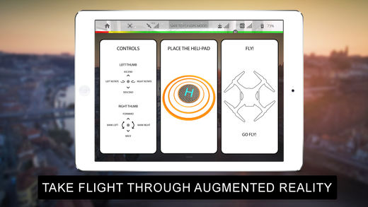 L’utente può scegliere di cimentarsi in voli liberi oppure di affrontare la modalità campagna con diverse sfide da portare a termine. In quest’ultimo caso saremo chiamati a pilotare con precisione per ottenere più punti facendo volare il nostro drone su circuiti composti da cerchi nell’aria, anche questi naturalmente in realtà aumentata. È disponibile anche un modalità allenamento per diventare piloti provetti, infine funzioni social per condividere con gli amici schermate o video delle nostre performance migliori.