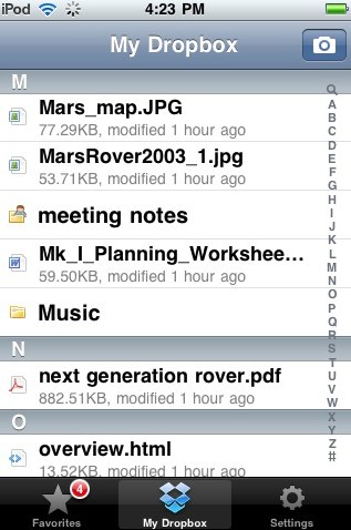 Ora arriva anche l’applicazione per i dispositivi multitouch della Mela: basta registrarsi o accedere al servizio con le proprie credenziali per avere accedere via iPhone o touch al proprio Dropbox e usufruire delle seguenti funzioni: