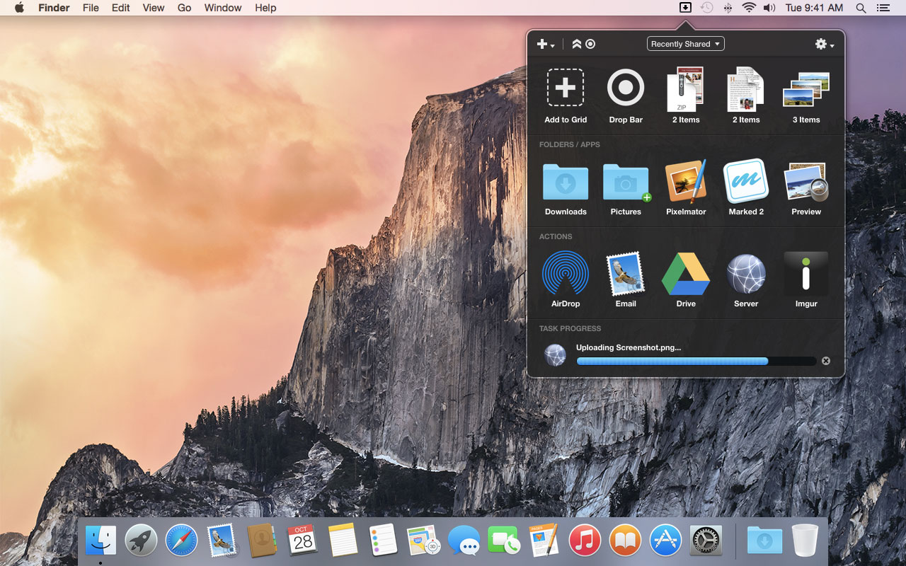 Dropzone è un’applicazione di produttività che rende più semplici e veloci operazioni come spostare o copiare documenti, avviare applicazioni, caricare un insieme di file su vari servizi online.